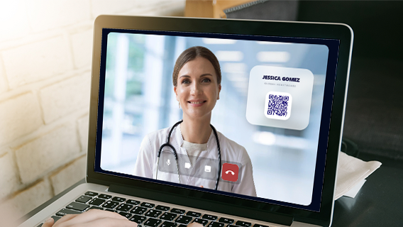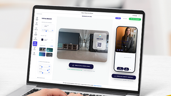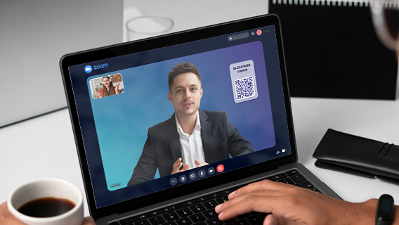 Create virtual backgrounds featuring your logo, brand colors, and a QR code that lets attendees instantly access your digital business card.