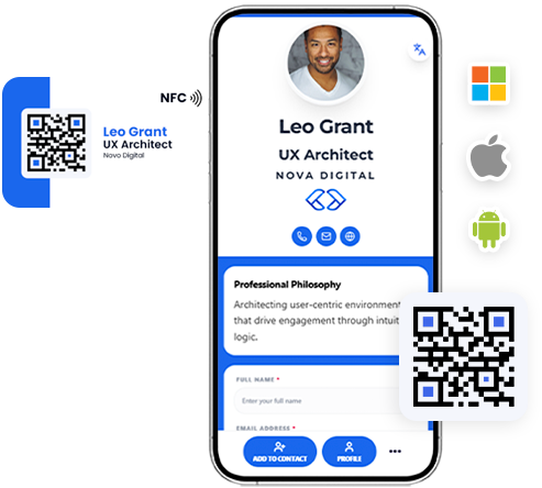 Make every connection effortless with QR and NFC sharing. Tap, scan, and connect instantly.