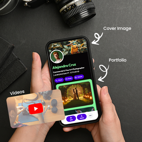 A digital business card helps photographers share portfolios, services, and contact details in one easy link.